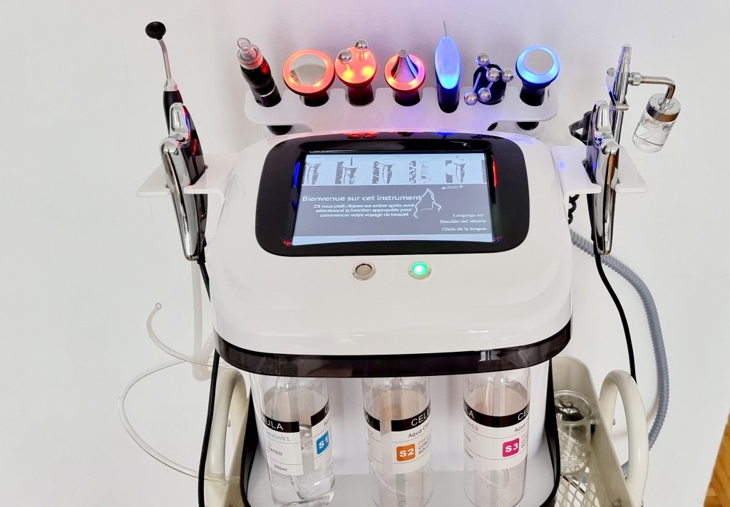 Inspiré du célèbre hydrafacial, ce dispositif 10 en 1 dans un même appareil bénéficiant des dernières technologies, permet l’amélioration de différentes problématiques de peau telles que ridules, points noirs, déshydratation, sécheresse, en personnalisant le soin en fonction des besoins et du type de peau, et cela, en respectant l’intégrité de l’épiderme.